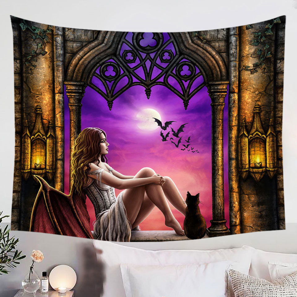 Fantasy Gothic Art Beautiful Dragon Angel Girl Tapestry