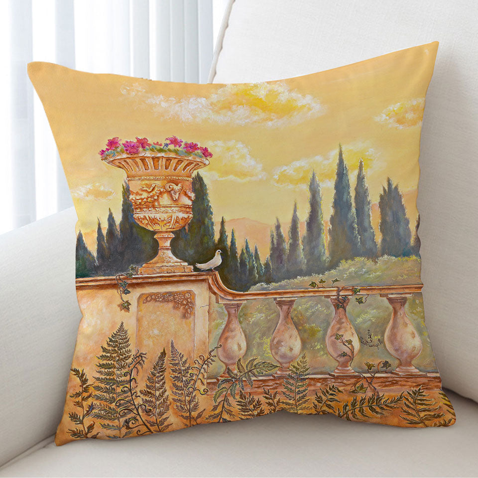 Fine Art Painting Beautiful Terrace Facing the Forest Throw Pillow