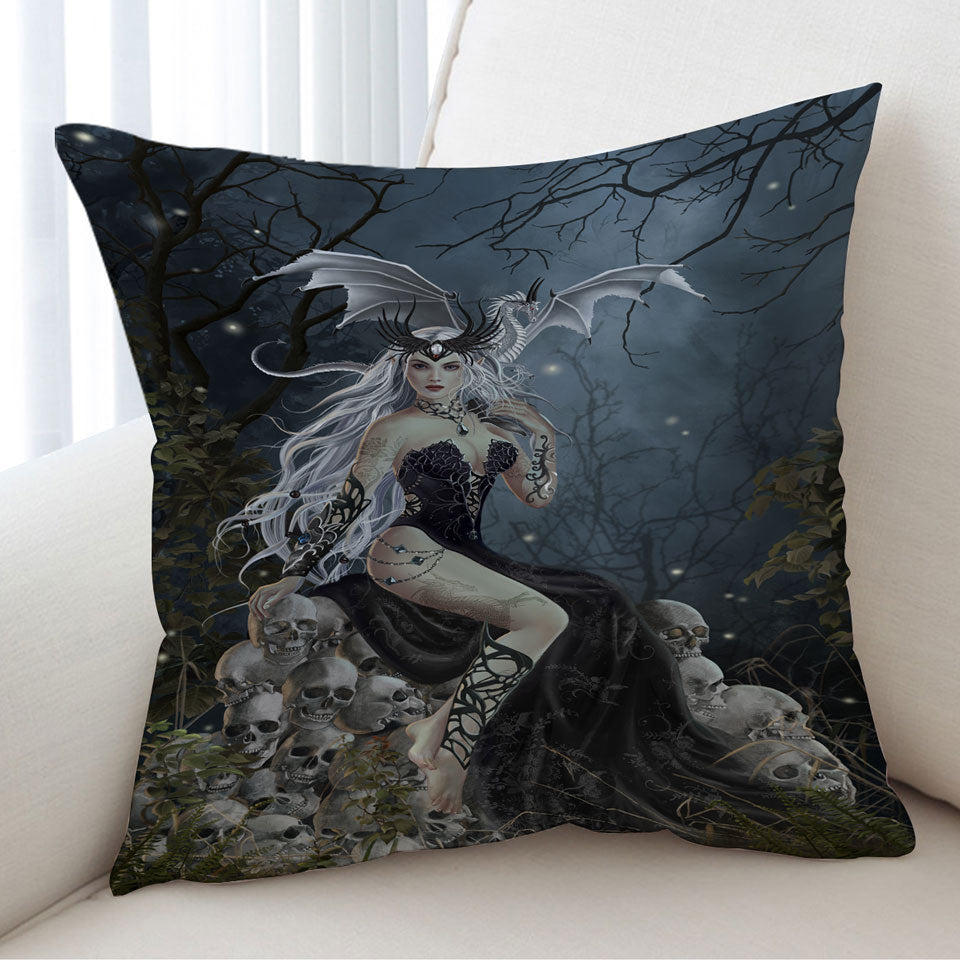 Gothic Fantasy Art the Mad Queen Dragon and Skulls Throw Pillow