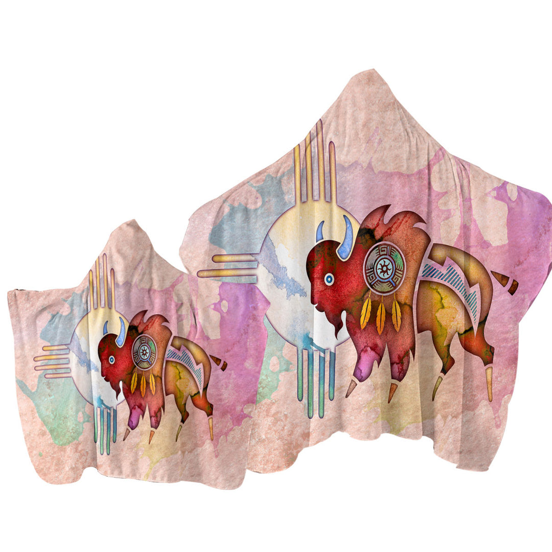 Native American Animal Art Painted Buffalo Towel with Hood