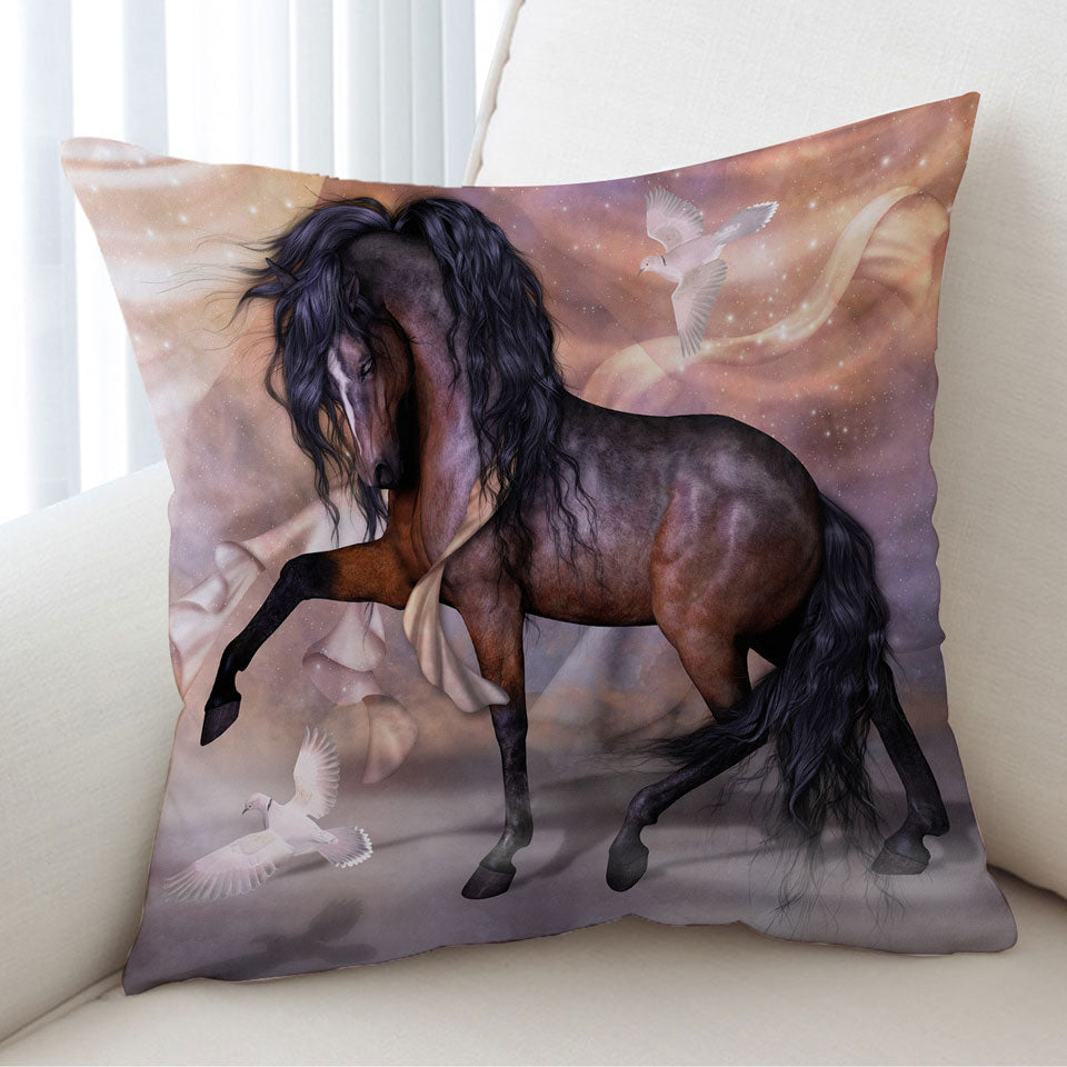 Noble and Graceful Brown Horse and Doves Throw Pillow