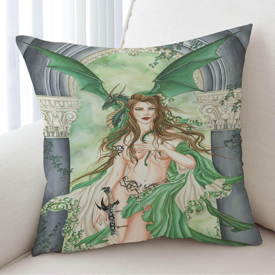 Sexy Fantasy Art the Green Oracle and Dragon Throw Pillow