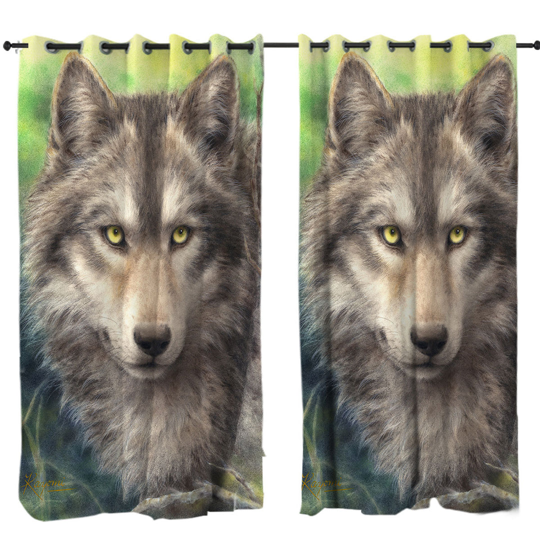 Wild Animals Art Grey Wolf Forest Watch Curtain