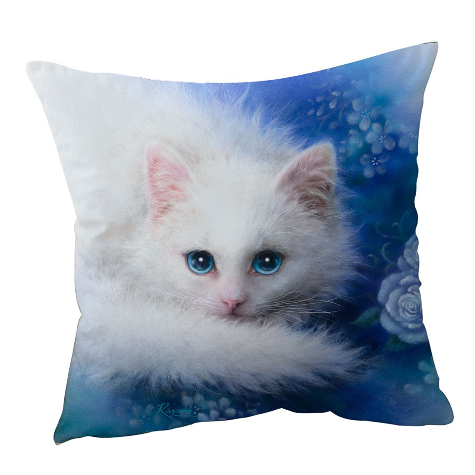 Cat Painting Blue Eyes White Lady Kitty Throw Pillow