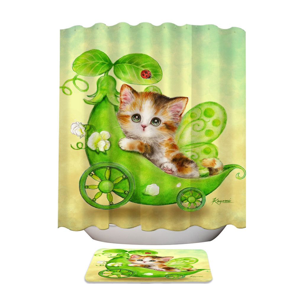 Fun Cats Cute Green Peapod Fairy Kitten Shower Curtain