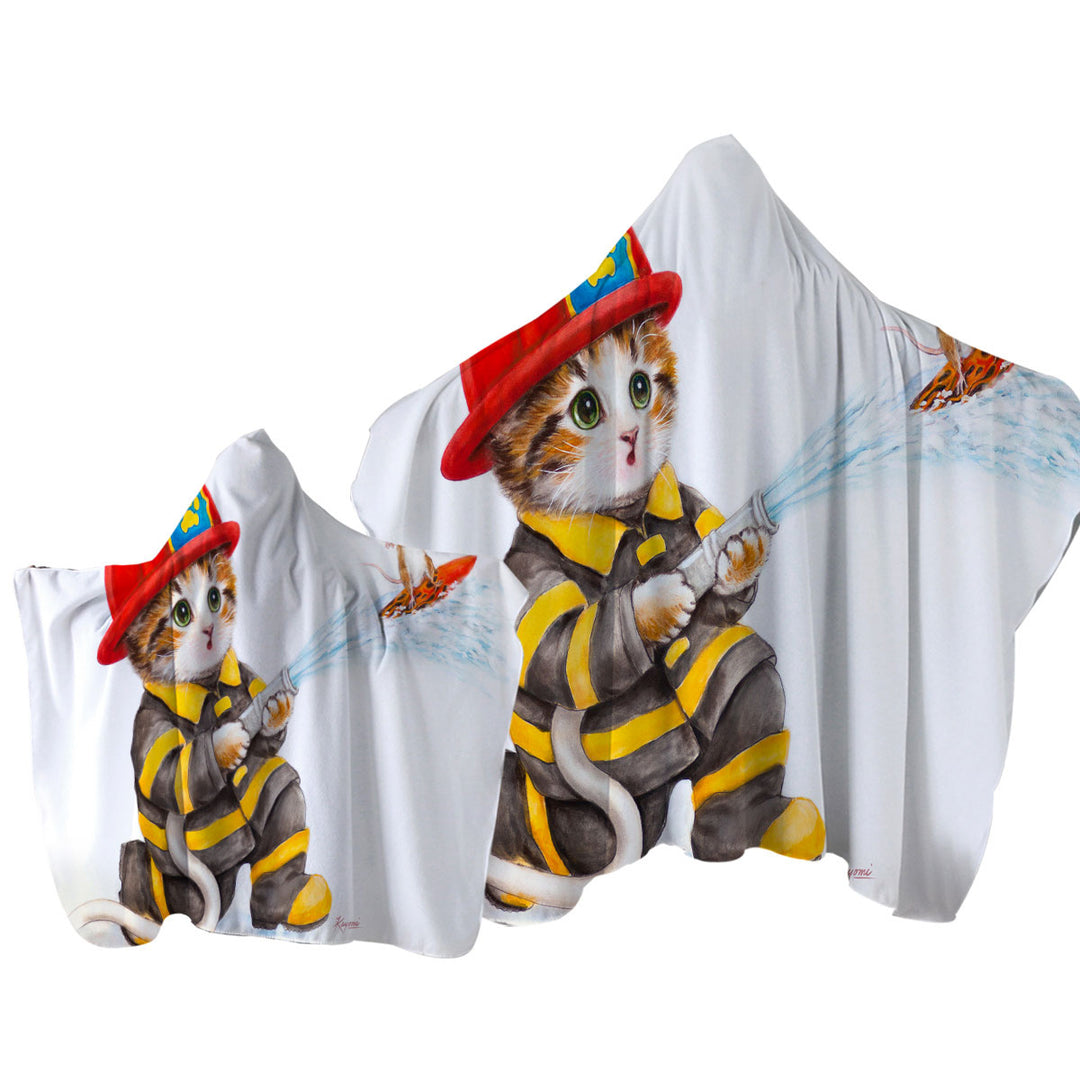 Funny Cats Cute Fire Fighter Kitten Towel with Hood