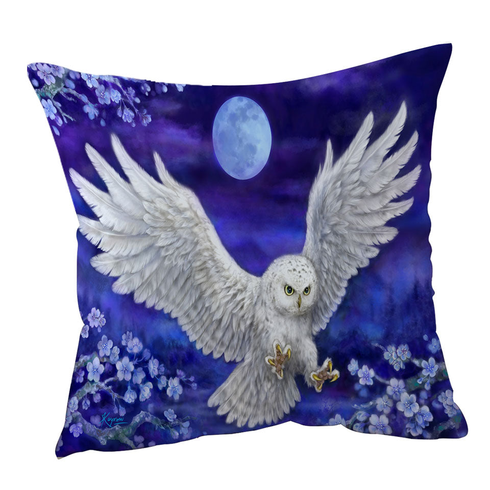 Purple Skies Moon Flowers and White Owl Throw Pillow