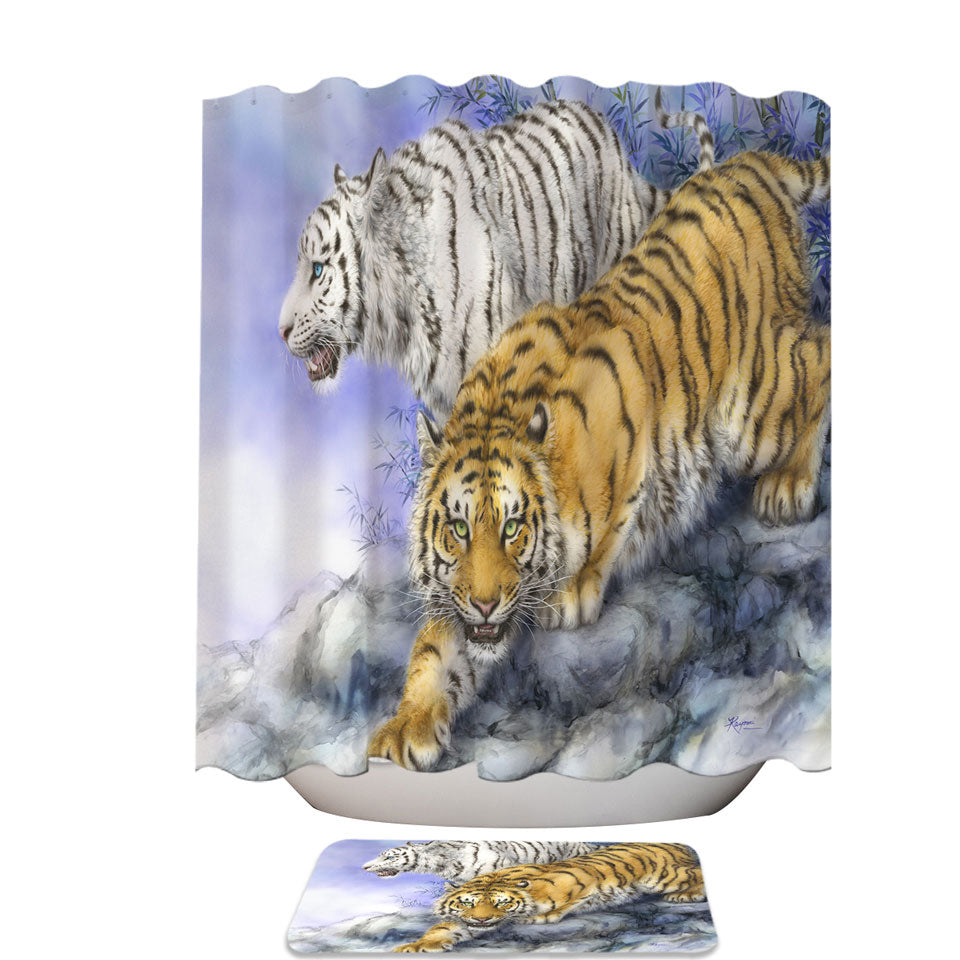 Wild Animal Art White and Orange Tigers Shower Curtain