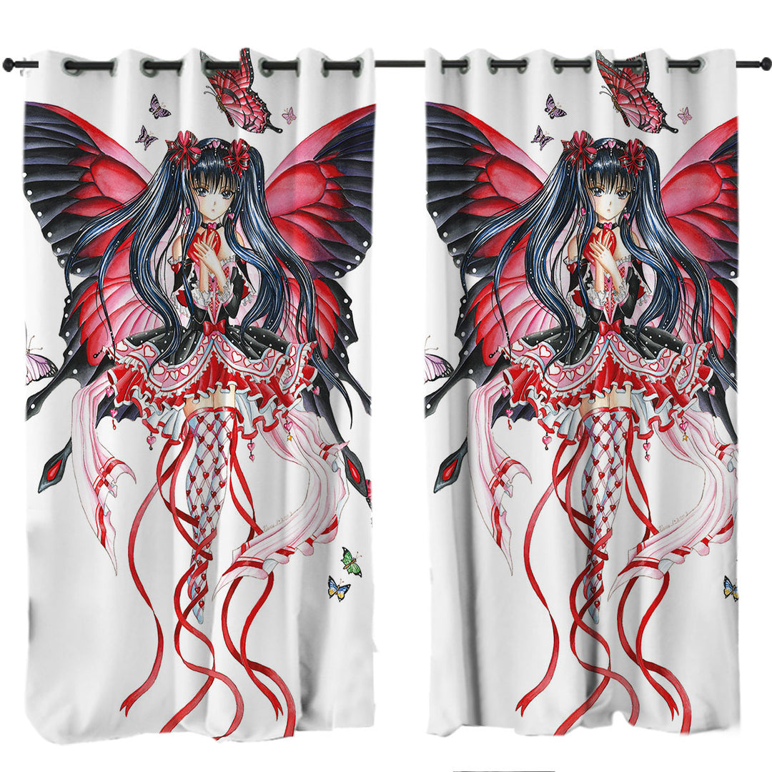 Fantasy Art Drawing Red Butterfly Girl Curtain