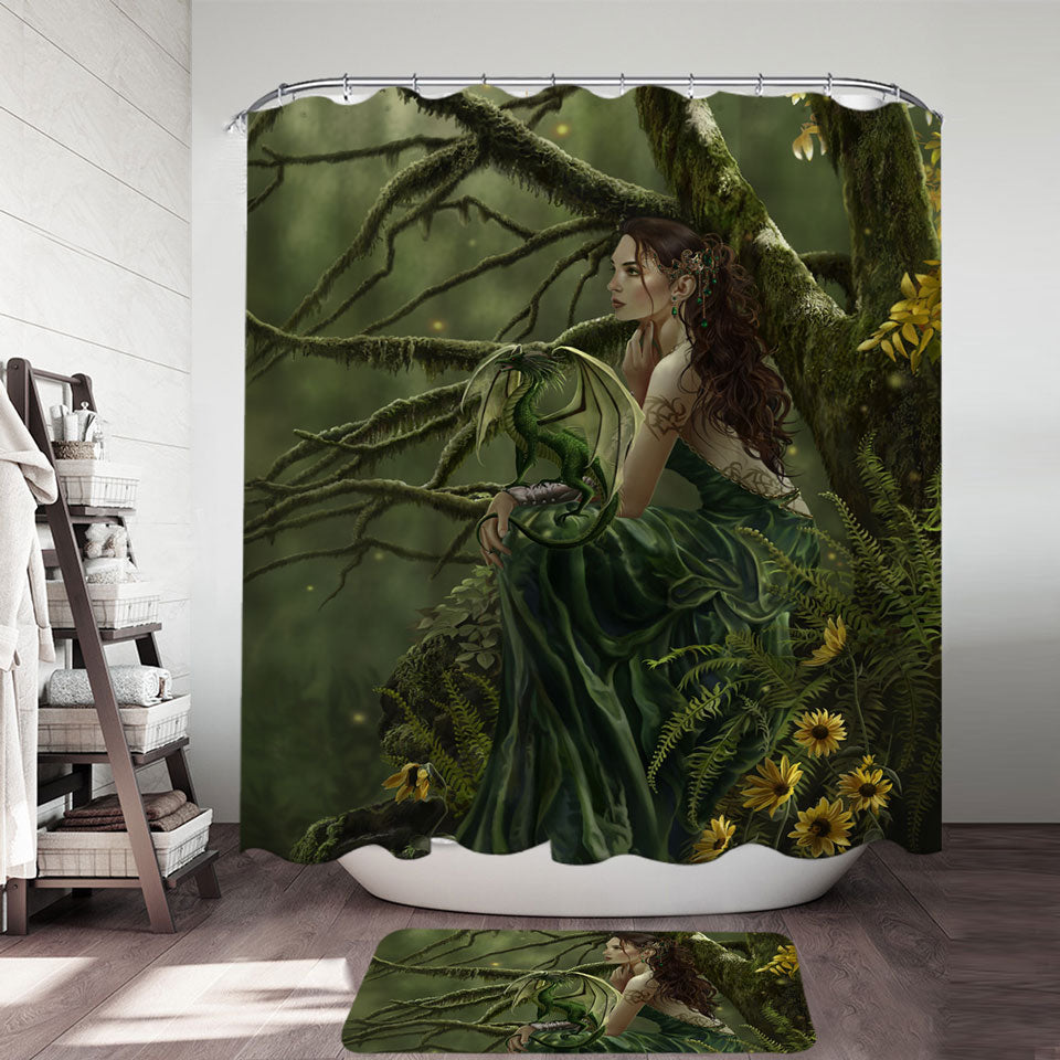 Fantasy Art Queen of Fate and Dragon Shower Curtain