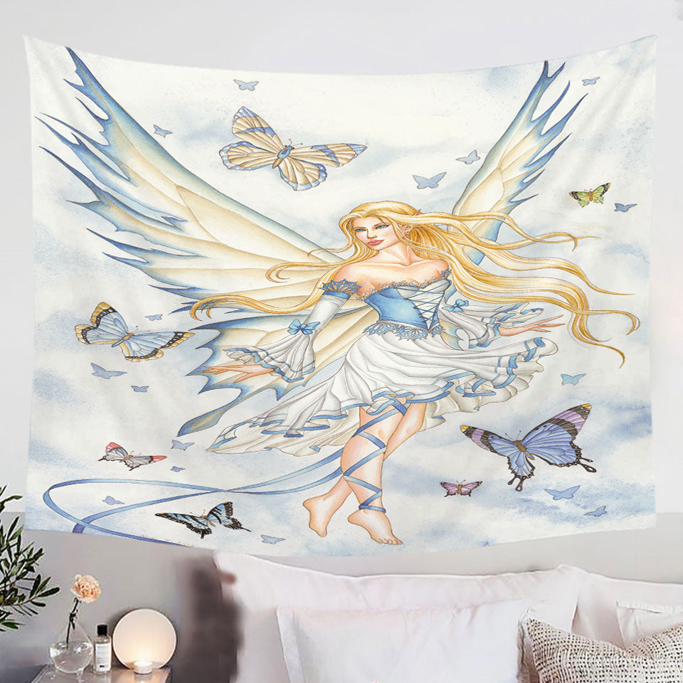 Fantasy Art Sky Blue Fairy and Butterflies Tapestry