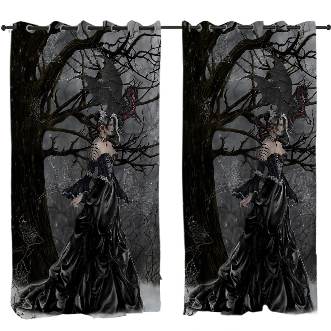 Gothic Fantasy Art Dragon and Queen of Shadows Curtain