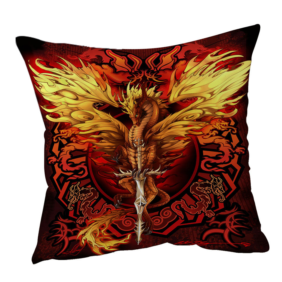 Cool Fantasy Sword Weapon Dragon Flame Blade Throw Pillow