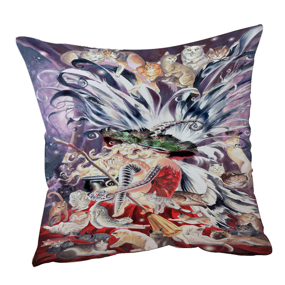 Fairytale Art Faerie Witch of Cats Throw Pillow