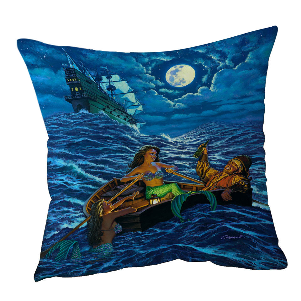 Cool Farewell Party Pirate Ship and Mermaids Throw Pillow