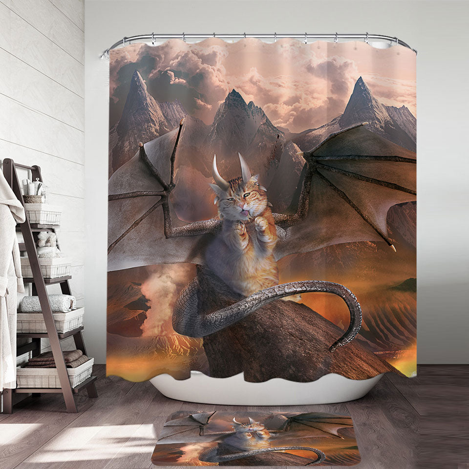 Funny Fantasy Art Evil Dragon Kitty Cat Shower Curtain