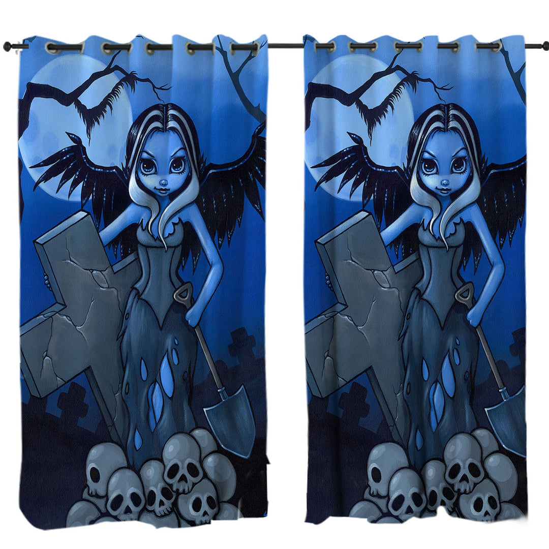 Scary Art Gothic Angel and Skulls the Gravedigger Curtain