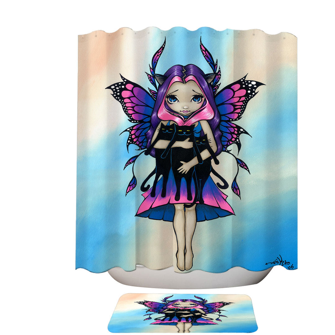 My Three Kitties Cute Fairy with Her Black Cats Shower Curtain