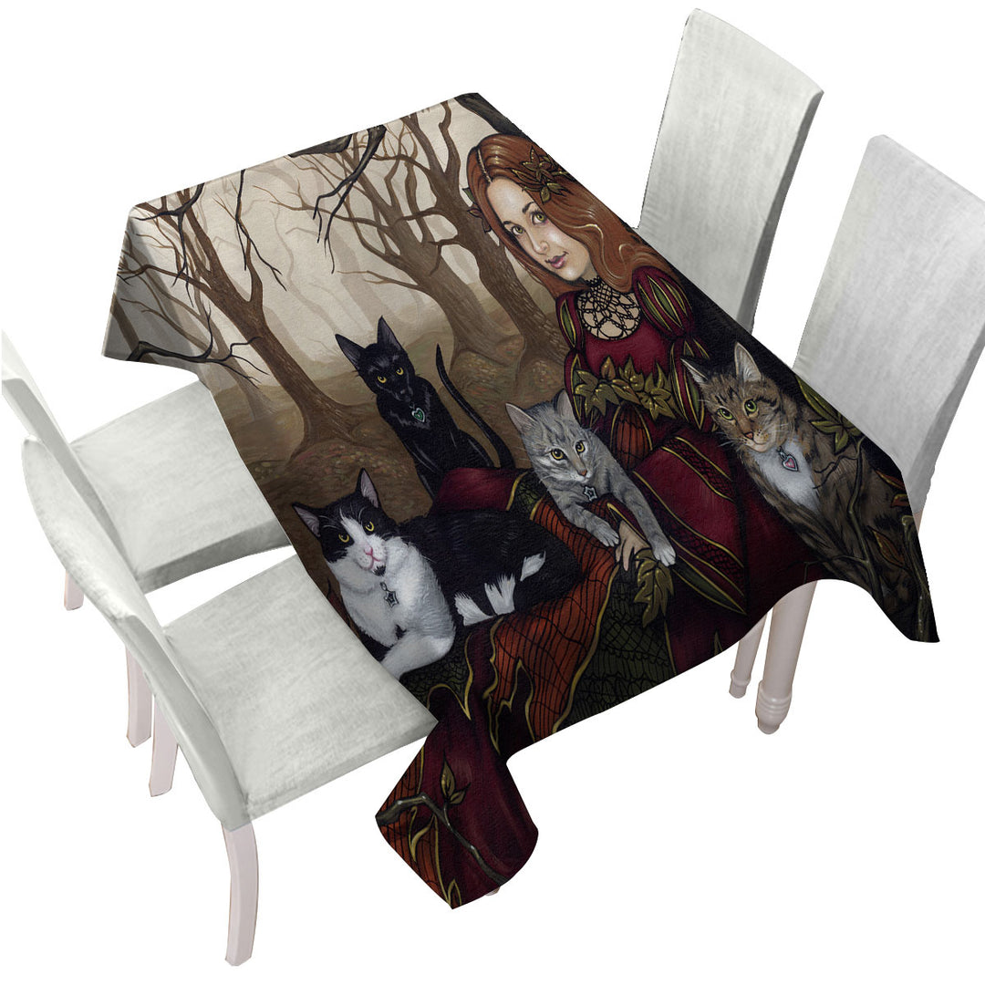 The Autumn Maiden Karen and Her Cats Tablecloth