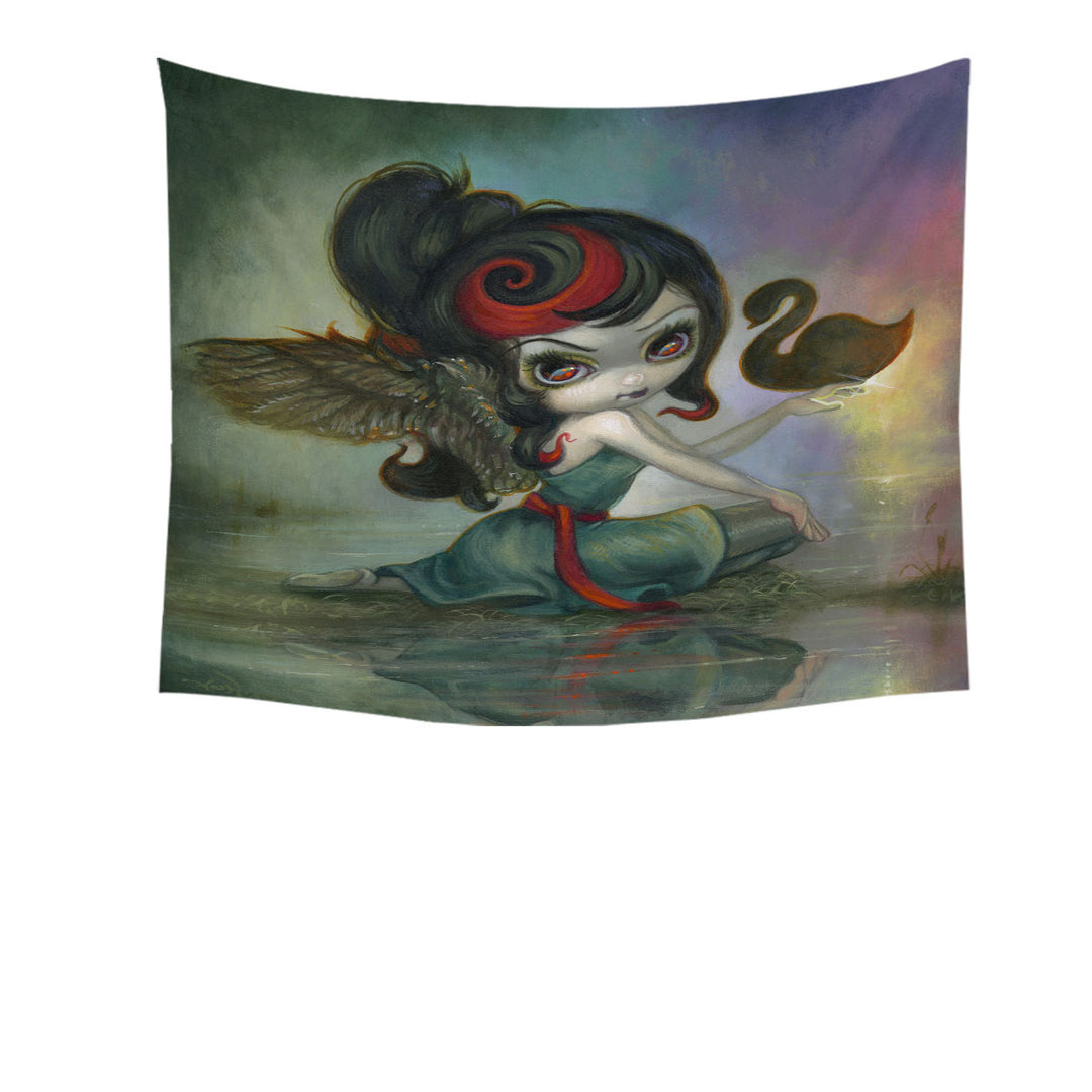 Art Painting Swan Lake Black Swan Ballerina Girl Tapestry