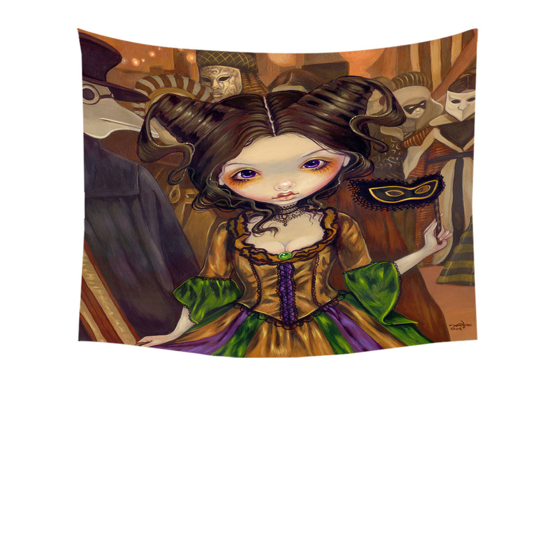 Beautiful Big Eyed Maiden at The Masquerade Ball Tapestry