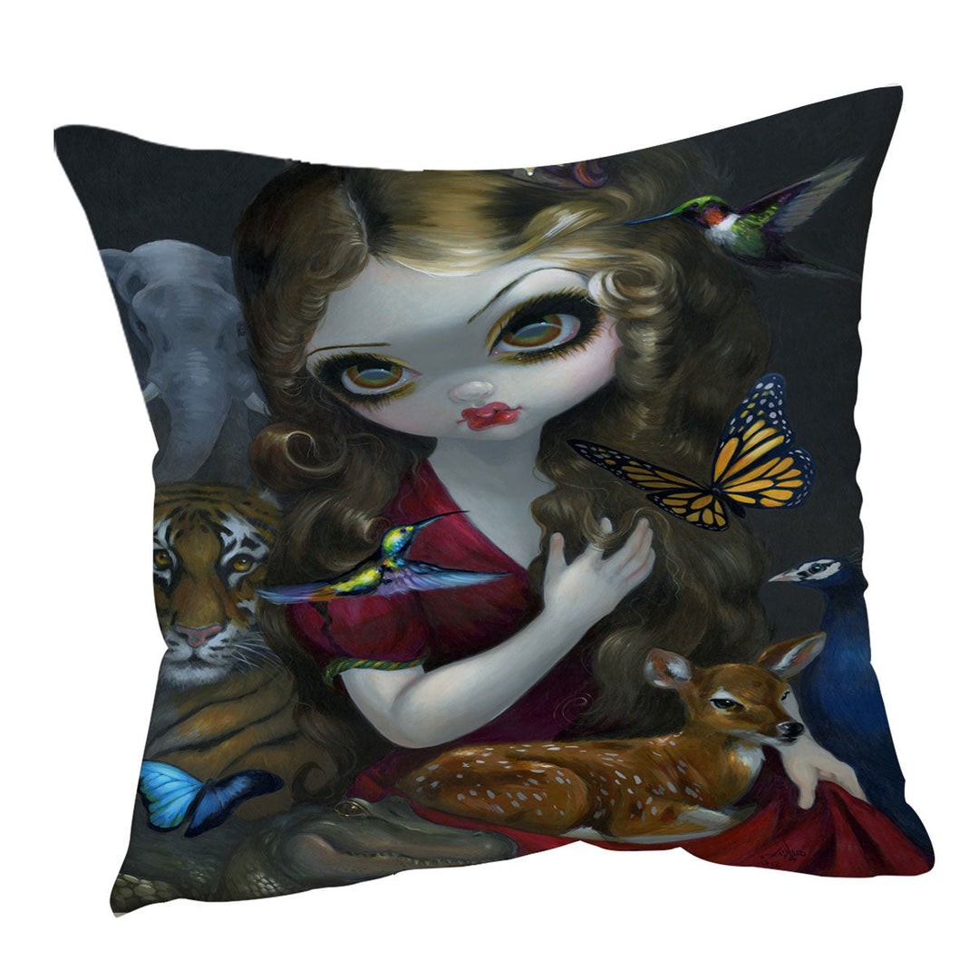 Maiden Fauna the Goddess of Animals Throw Pillow