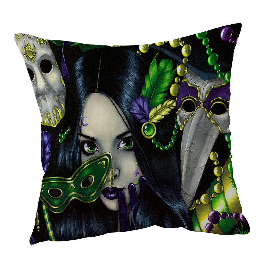 Mardi Gras Masquerade Purple Green and Gold Masks Throw Pillow