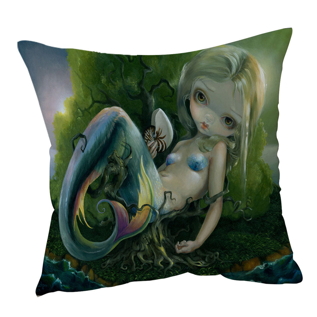 Melancholic Fantasy Stranded Island Mermaid Throw Pillow