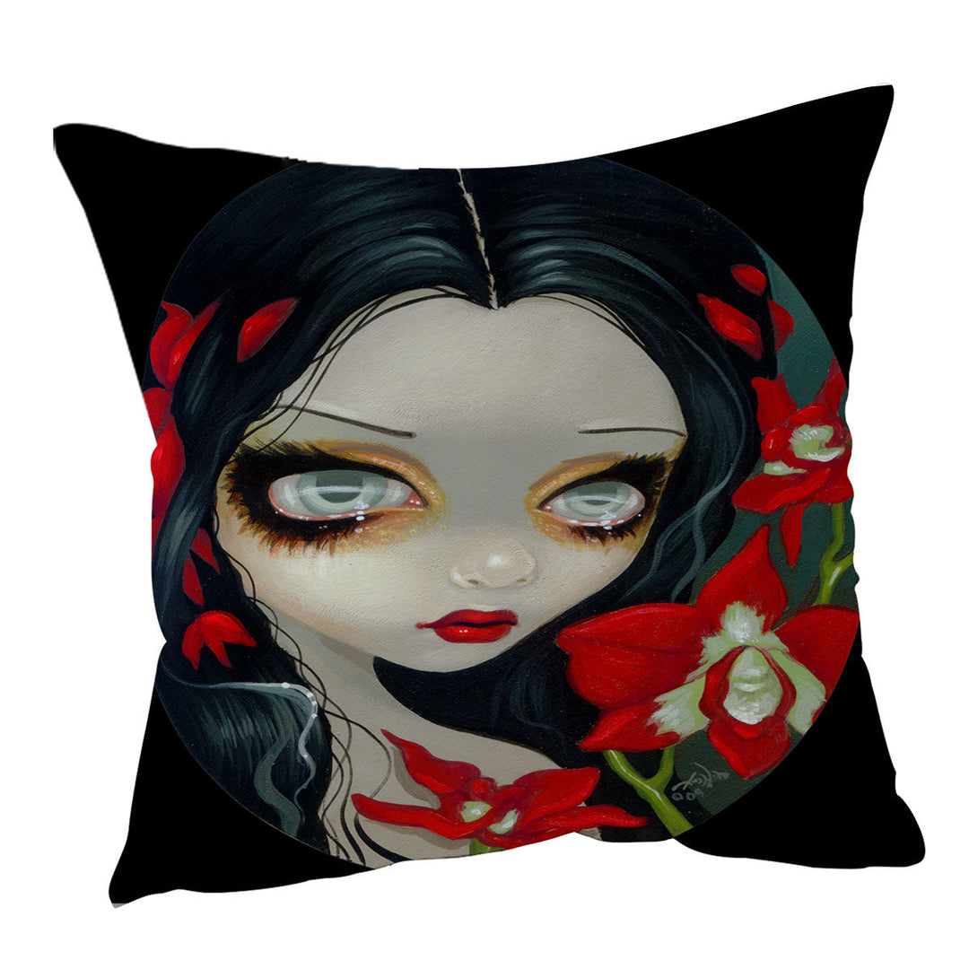 Red Blood Orchid Maiden Girl Throw Pillow