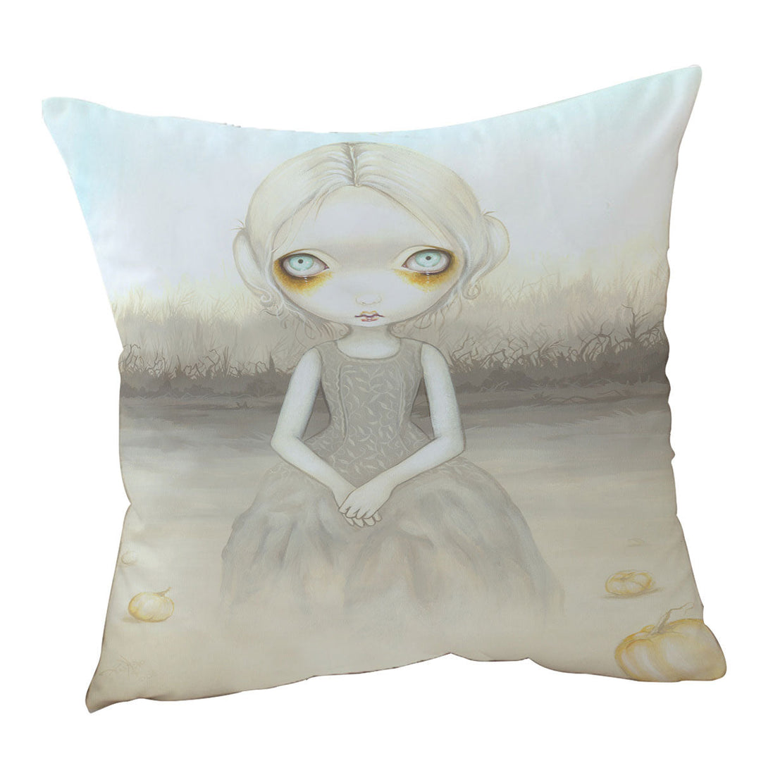 Scary Art Girl Ghost of the Pumpkin Patch Throw Pillow