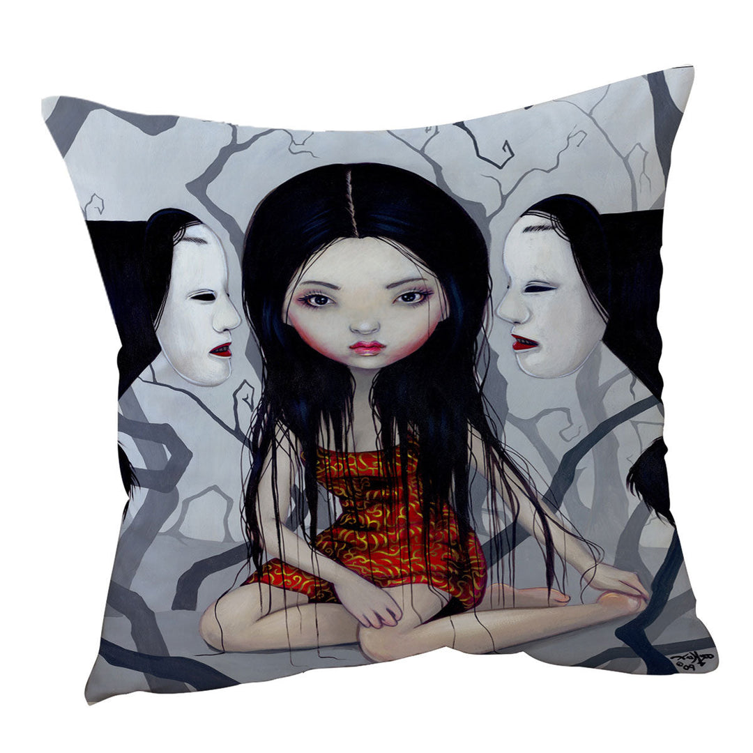 Scary Art Lovely Maiden and Faceless Ghosts Throw Pillow