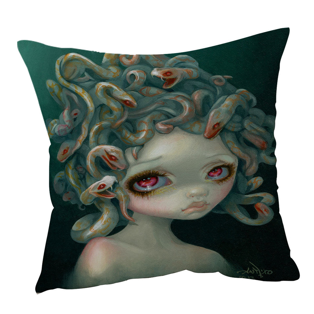Scary Art Snakes Head Pale Medusa Throw Pillow