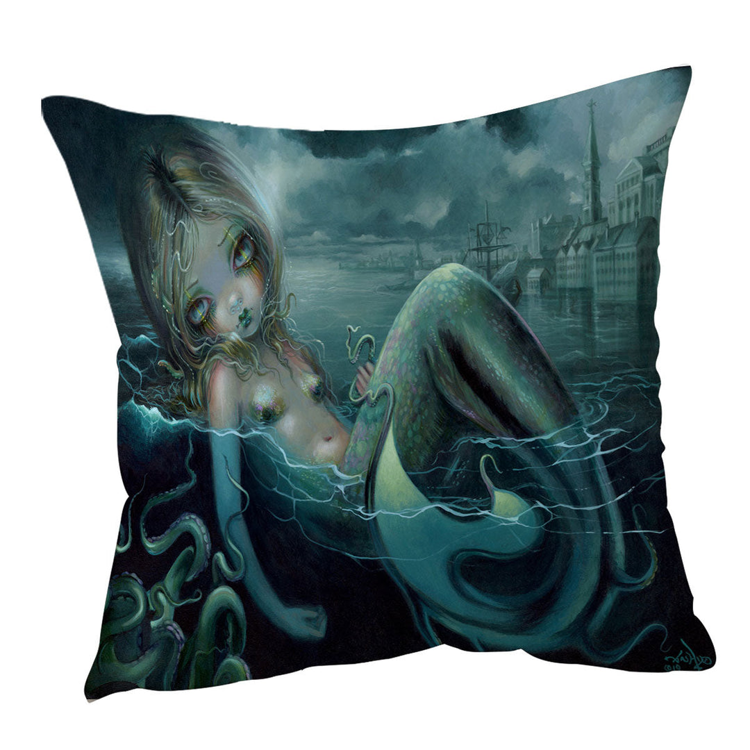 Scary Underwater Art Innsmouth Mermaid Throw Pillow