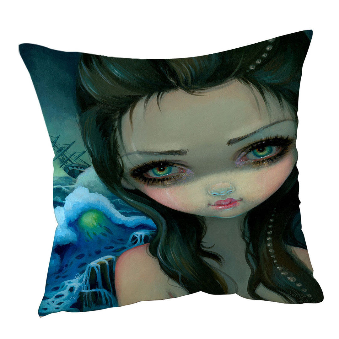 Shipwreck Siren Mythical Beautiful Girl and Ship Throw Pillow