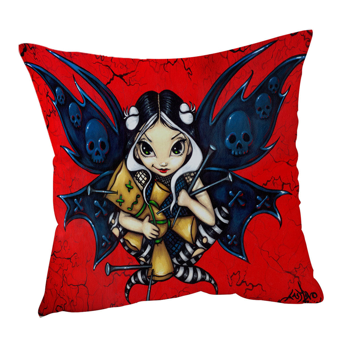 Skull Wings Mischievous Fairy Voodoo Throw Pillow
