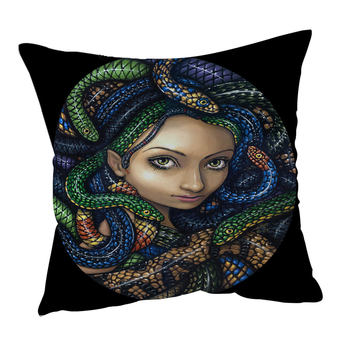 Snakes for Hair a Portrait of Medusa Throw Pillow