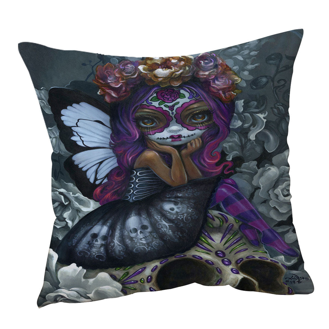 Soulful Spirits Day of the Dead Girl and Skulls Throw Pillow