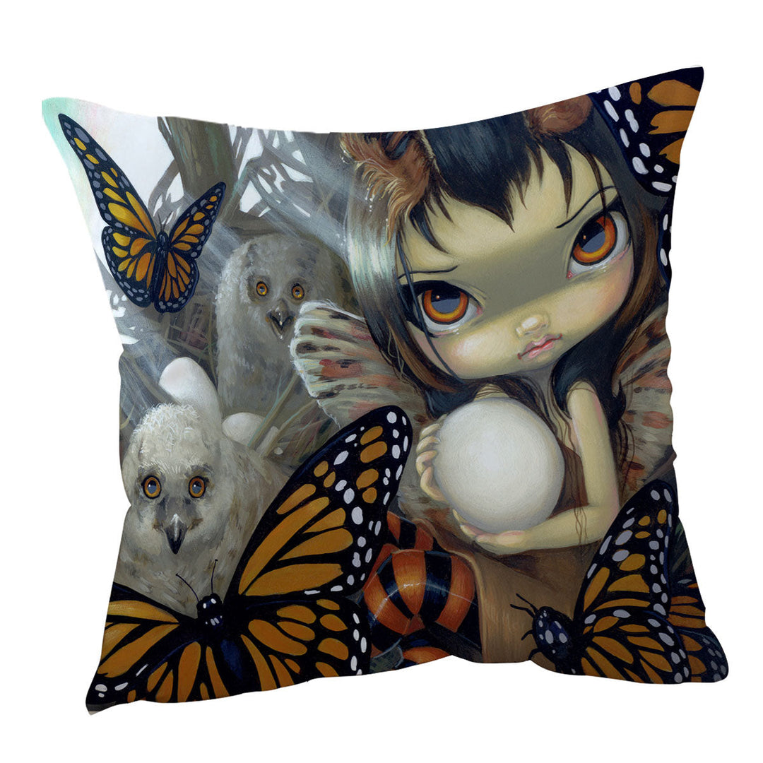 The Owl Fairy Owlyn in the Nest with Butterflies Throw Pillow