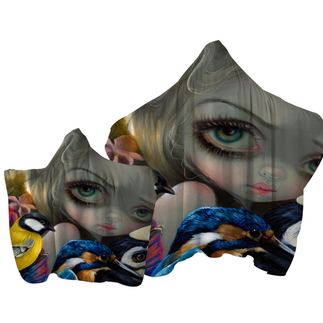Art Painted Birdsong Beautiful Maiden and Birds Towel with Hood