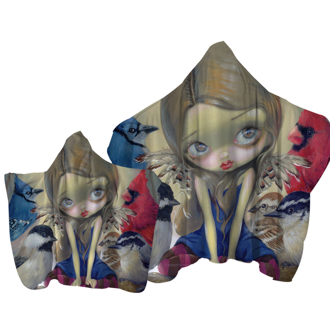 Art Painting Backyard Birds with a Fairy Friend Towel with Hood