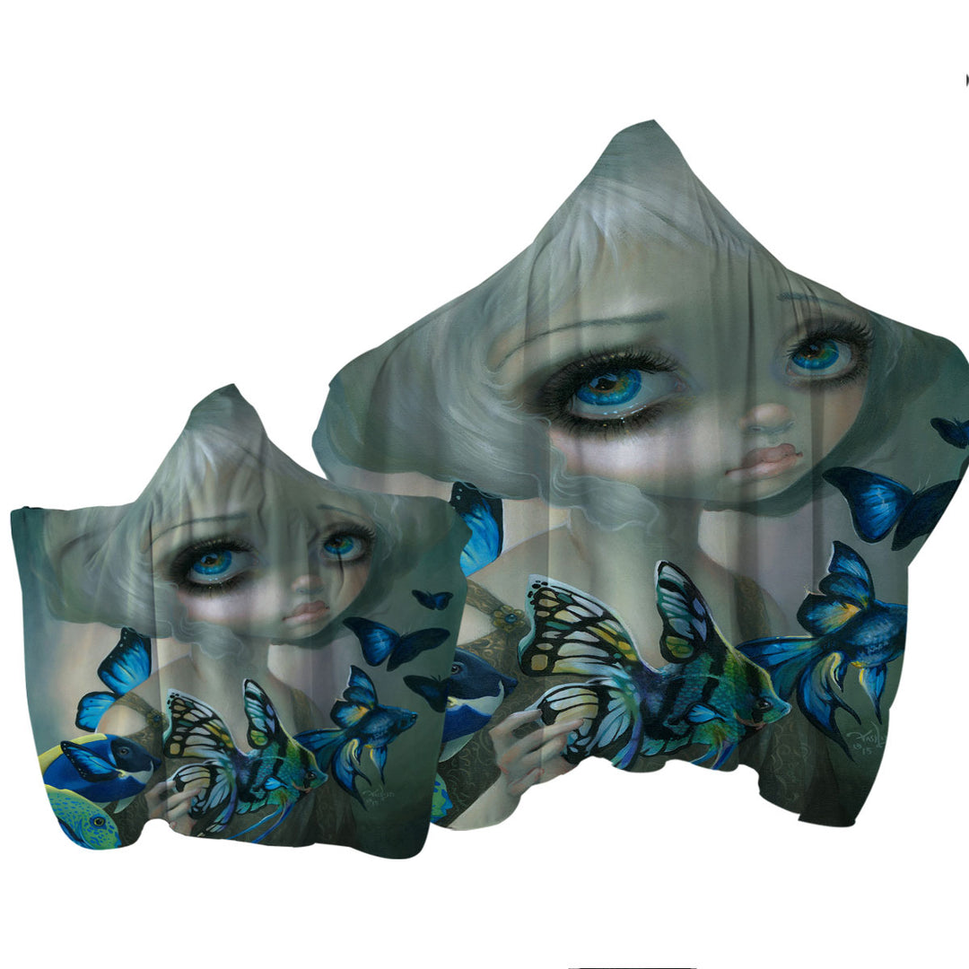Beautiful Girl and the Blue Fish Butterflies Towel with Hood