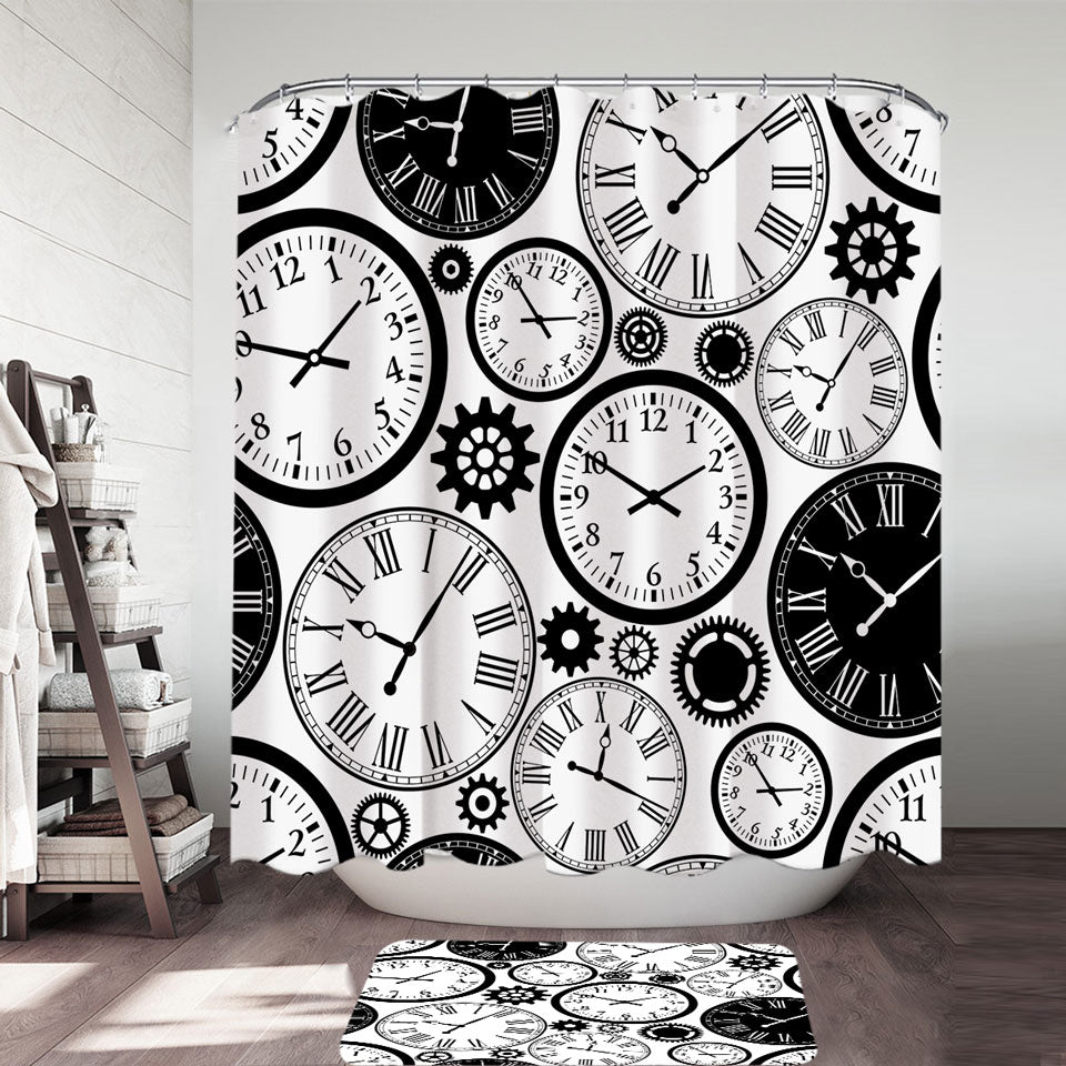 Black and White Clocks Shower Curtain