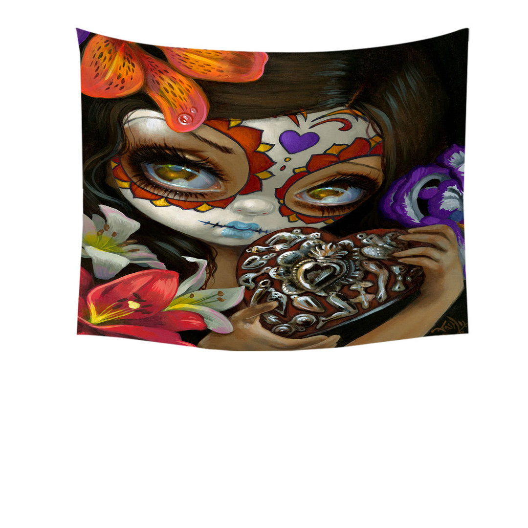 Milagros Corazon Day of the Dead Lovely Girl Tapestry