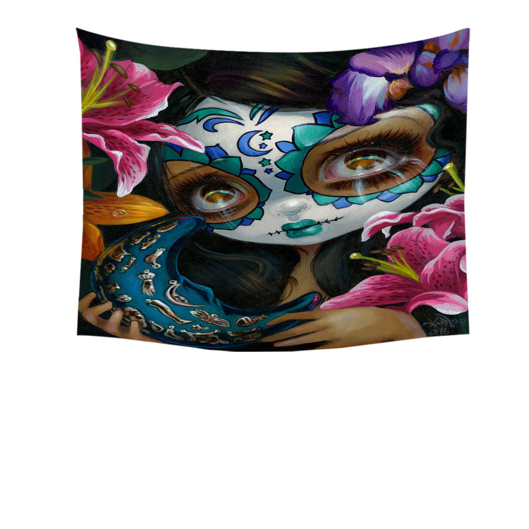 Milagros La Luna Day of the Dead Moon Girl Tapestry