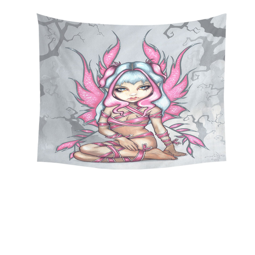 Pink Ribbon Fairy Cute Sliver Haired Fairy Tapestry