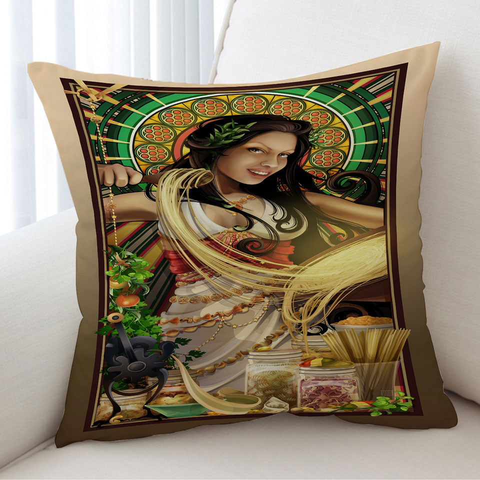 Cool Woman Art Goddess of Pasta Throw Pillow