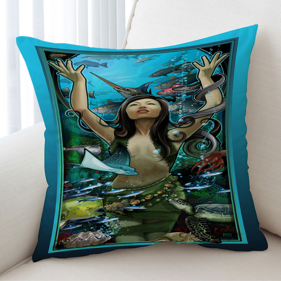 Underwater Beautiful Woman the Goddess of Marine Life Throw Pillow