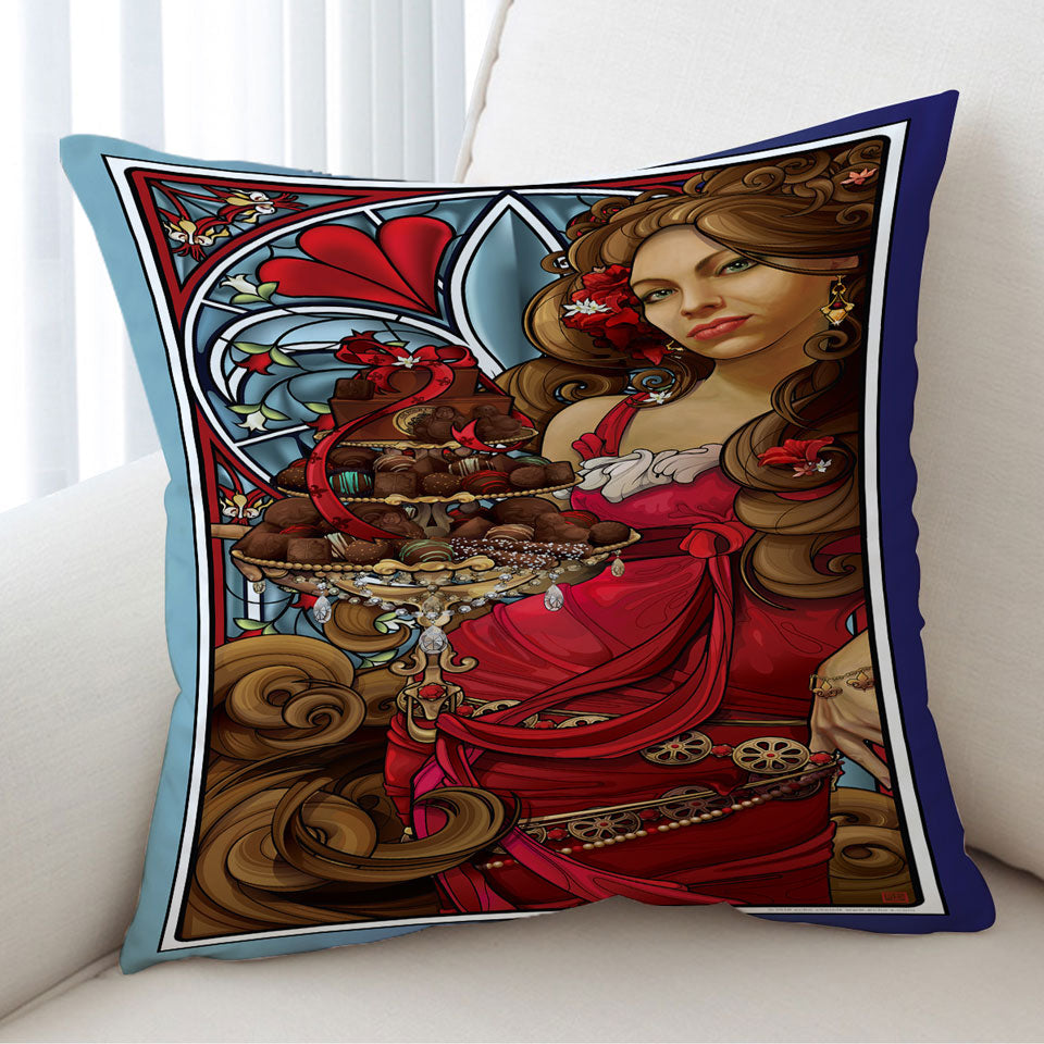 For the Love of Chocolate Beautiful Woman Throw Pillow