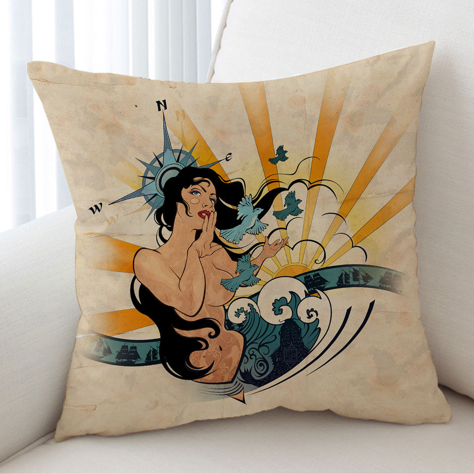 Nautical Sexy Woman Spirit of Navigation Throw Pillow
