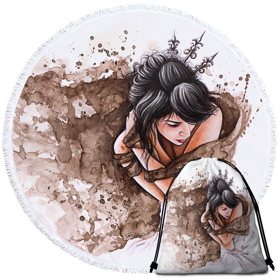 A Winters Tale Beautiful Woman Art Painting Round Beach Towel